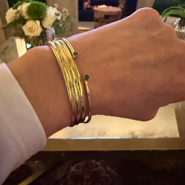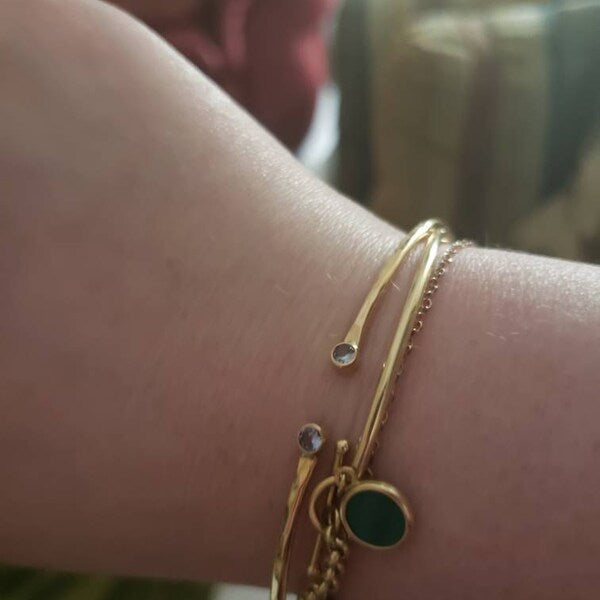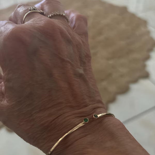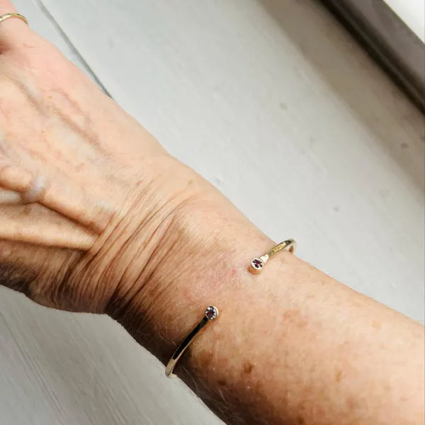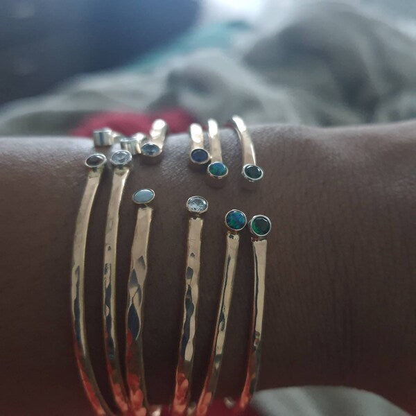 Love the bracelet. Edita customized it for me with my 2 children’s birthstones. The hammered look makes it stand out.