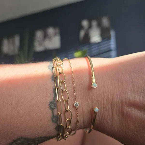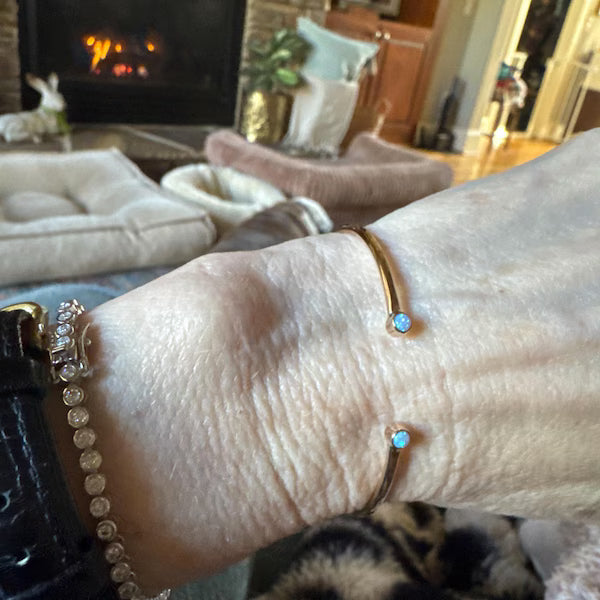 Great communication!! The bracelet is absolutely gorgeous. I love the hammered gold. The opals are so pretty and really stood out.